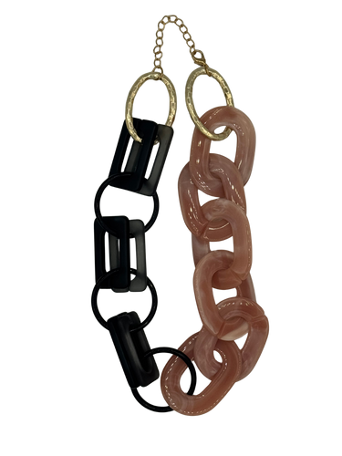 Tempest Designs - half oval / square resin links necklace - pink / grey