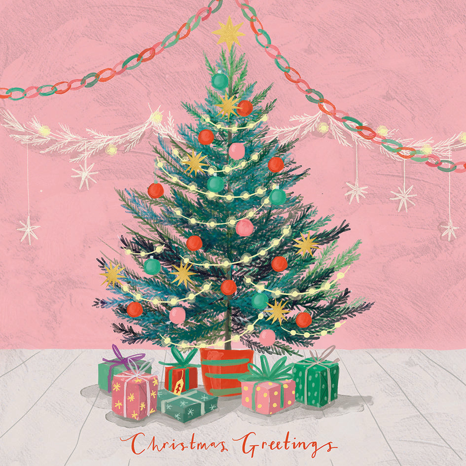 A pack of 10 Christmas cards featuring a beautifully decorated Christmas tree, with the following message inside: