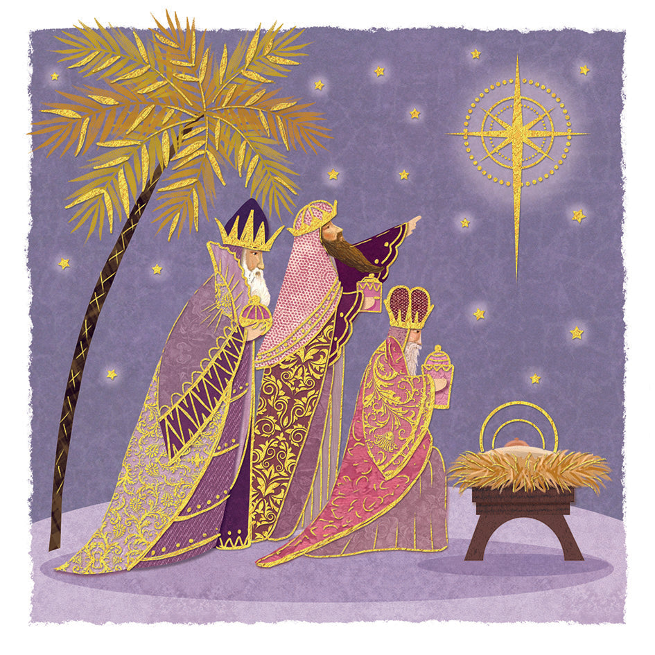 A pack of 10 Christmas cards featuring the three wise men with the following message inside: