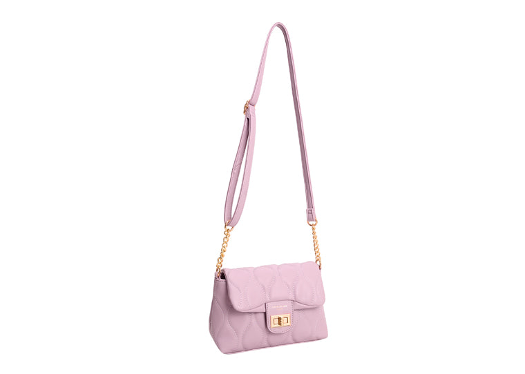 This pretty lilac padded effect shoulder bag has a zip top and two internal pockets (one open, one zipped) plus an adjustable strap.