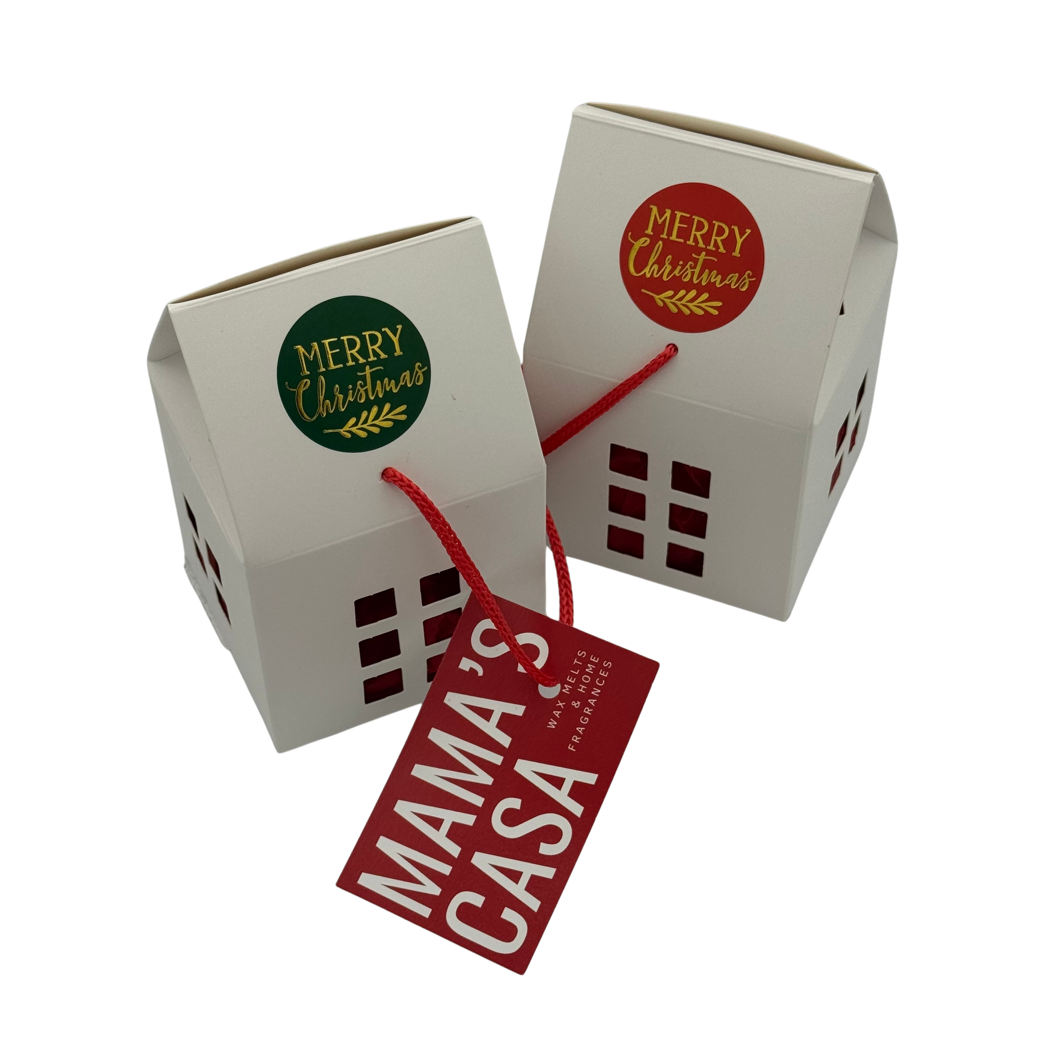 They come individually wrapped in tissue paper inside a lovely house-shaped presentation box, with a "Merry Christmas" message.